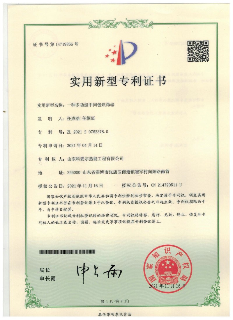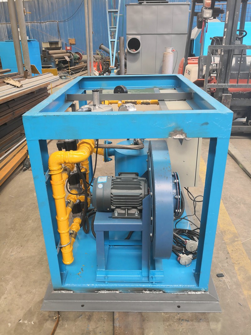 中間包烘烤器:包括燃燒器、鼓風機、助燃風管道係統和煤氣管道係統,所述助燃風管道係統一端連接鼓風機,另一端接入位於燃燒器前的煤氣管道係統,還包括通過控製煤氣管道閥門開閉自動調節溫度的控製係統,所述燃燒器為1-5個(根據膜胎尺寸確定),中間包工作層受熱均勻,易脫模節能效果明顯。
